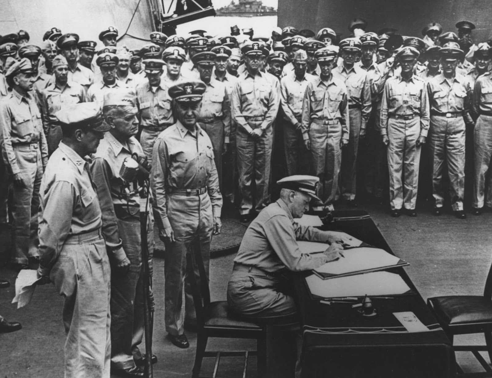 З початку 1945 року Німіц готував вторгнення до Японії. Після атомного бомбардування японці погодилися капітулювати 11 серпня, однак дії флоту тривали. Вони припинилися у ніч на 15 серпня. 2 вересня на борту “Міссурі” Німіц, як представник США, підписав акт про капітуляцію Японії.
